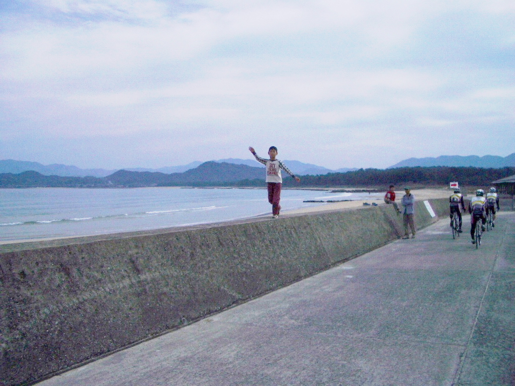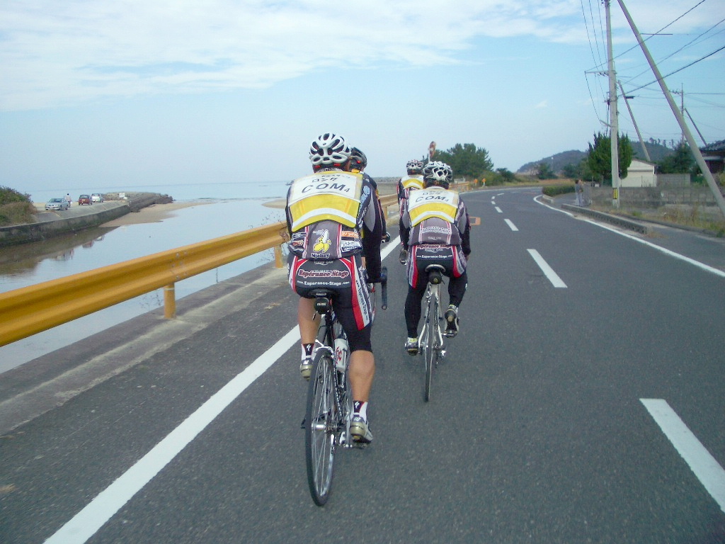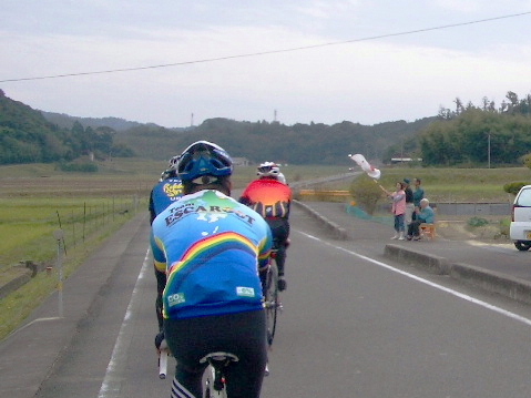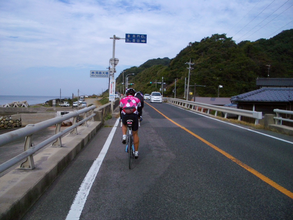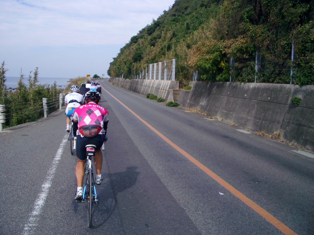 35km/hペースで走っておられましたので、しばらく後につかせていただき順調なペースで走行してると・・、
