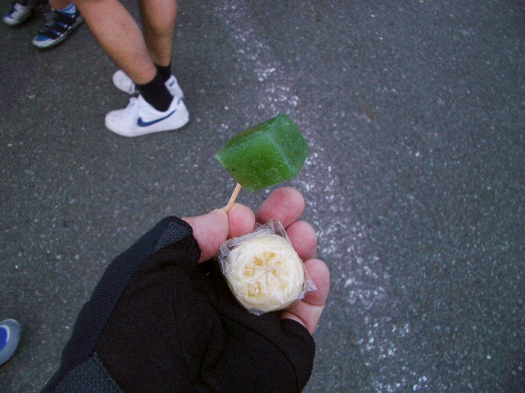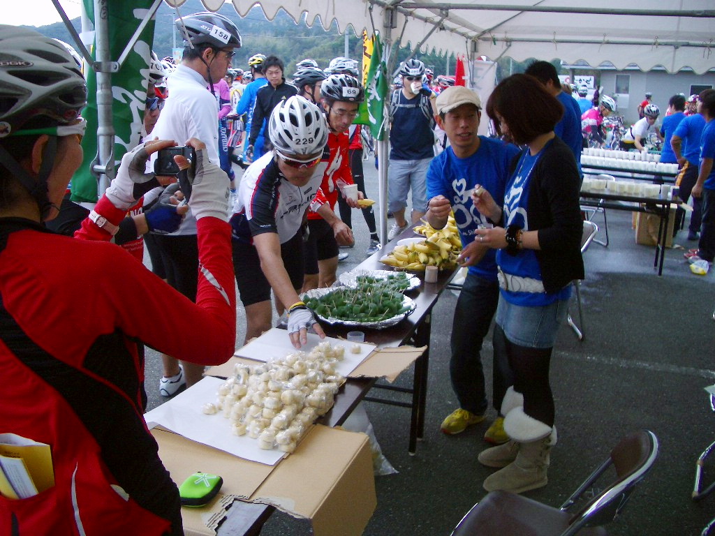 ここでは、川棚まんじゅう・バナナ・ドリンクのお接待をいただきます。