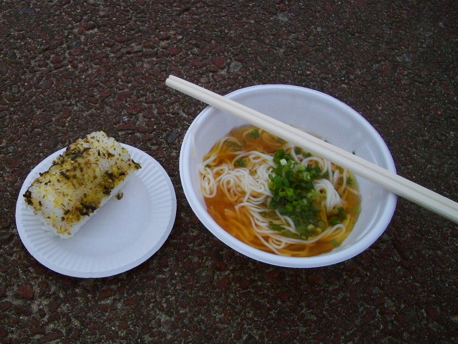 新米の俵型おにぎりとソーメンのお接待をいただきます。