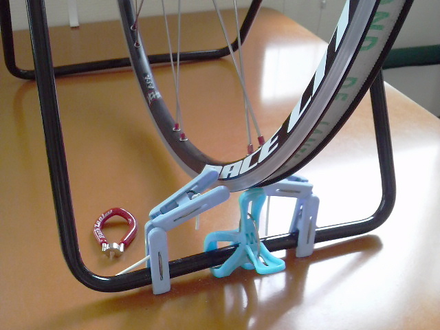 こんな具合に、家にあった洗濯バサミをセットしてホイールを回す。
