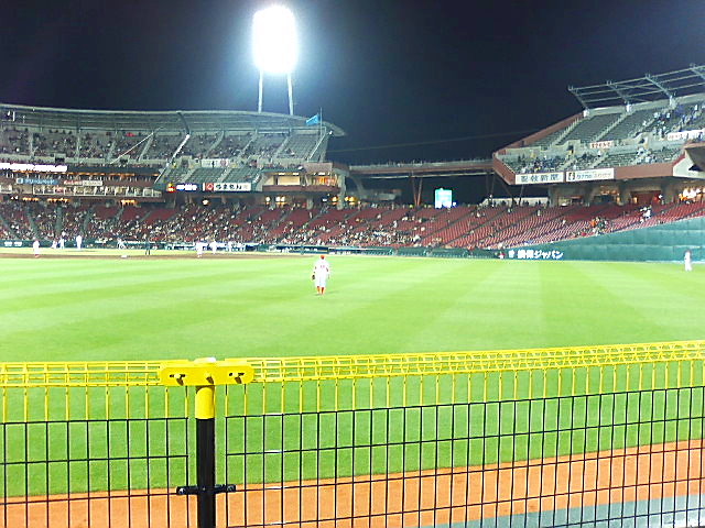 人ごみから覗き込んだら、栗原の打ったボールがレフトスタンドに消えていくとこ・・