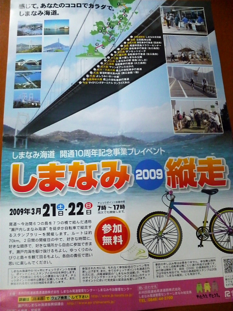 スタンプラリー「しまなみ縦走2009」に友人と二人で参加してこようと思います。