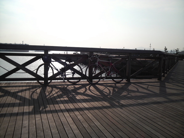 ここには、ちゃんとした駐輪場があったので、スタンドに立ててみた。
