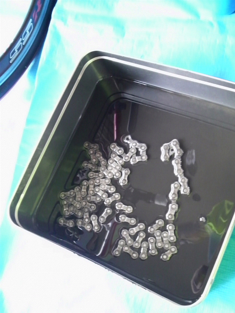 チェーンを外して、スチール缶に入れて灯油で洗ってあげました。