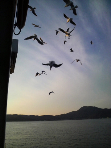 カモメに見送られながら広島に戻ってきました。。
