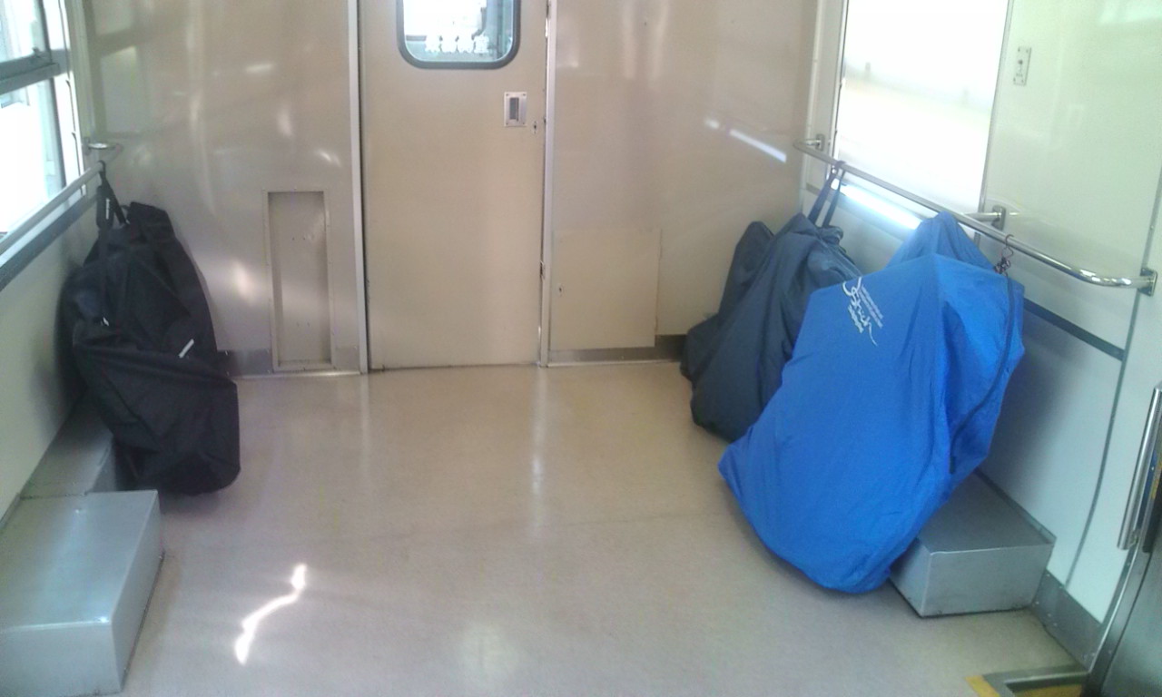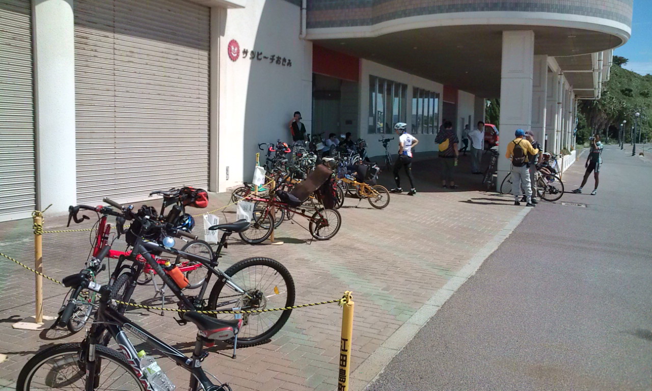 のんびりストレッチしたり、トイレに行ったり、ソフトクリーム食べて輪行袋に自転車を収納。