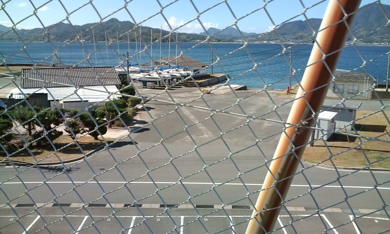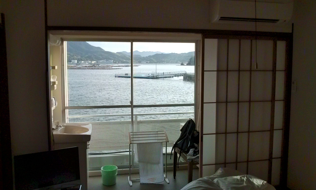 部屋の窓から目の前に見えるのは江田島湾
